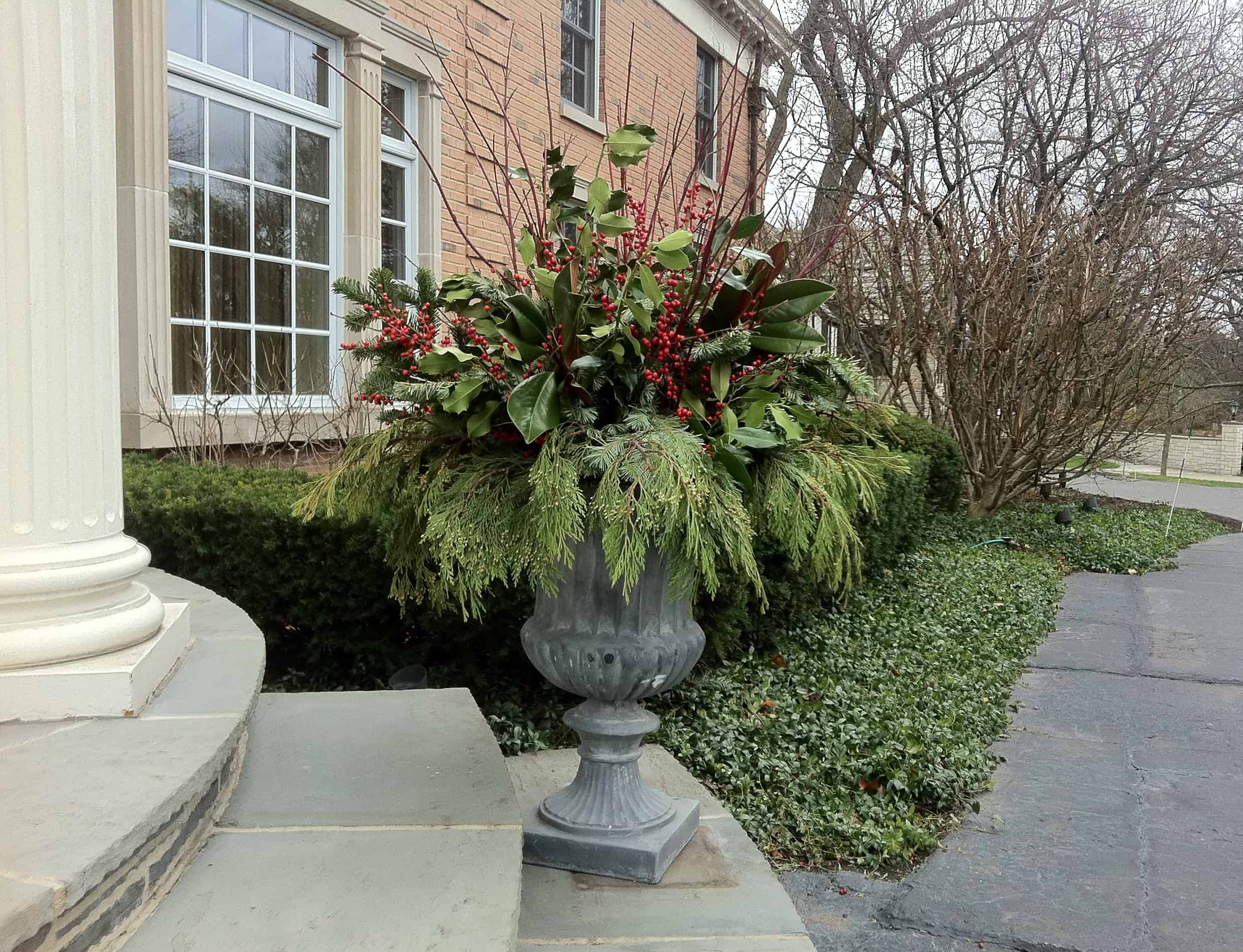 There is quite the assortment of beautiful evergreens in varying shades of green to blue that will last until spring. Add in branches, berries, pine cones and seed pods. For added color you can include ribbons or lights! It’s all up to your imagination, don’t let the winter doldrums limit you!