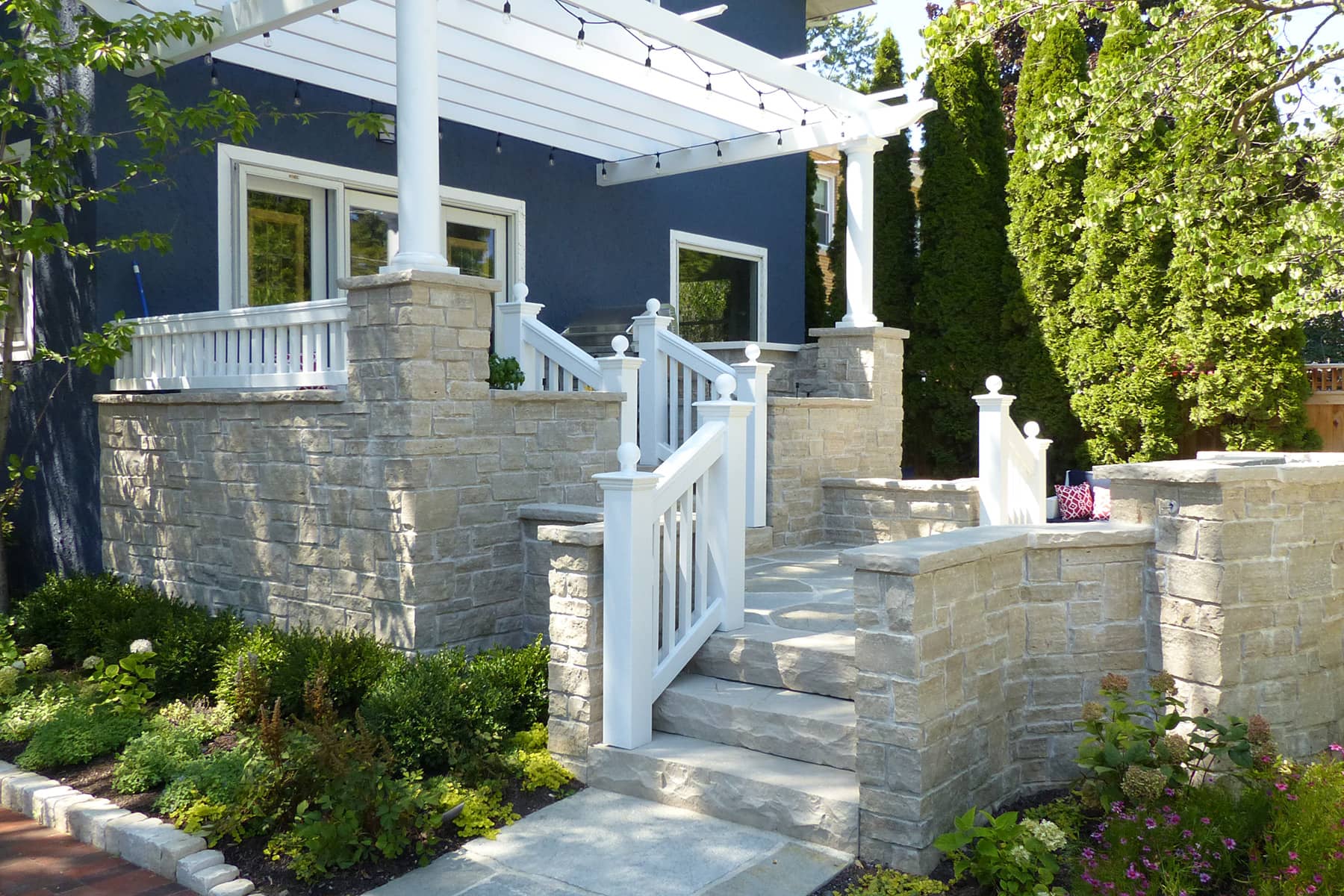 With bright plantings and unexpected hardscape, this compact property has achieved its full potential. A new paver driveway, flagstone patio and stone seatwalls give a fresh structure to the environment, showcasing planting beds that explode with color on every side of the home.